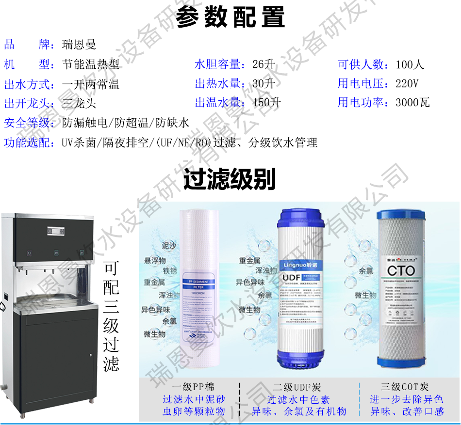 高校饮水机通过多级过滤系统,采用水电联动阀技术和热能回收技术,在常压下工作,水经过多级过滤,使用更安全。此外,直饮水机通过多级过滤,确保饮水的卫生和安全,所制直饮水新鲜、甘甜、无菌,且含有一定微量元素和矿物质。并采用先进的热能转换技术和逐层步进分层加热技术,保温效果显著,确保热量消耗的同时不造成空气污染。